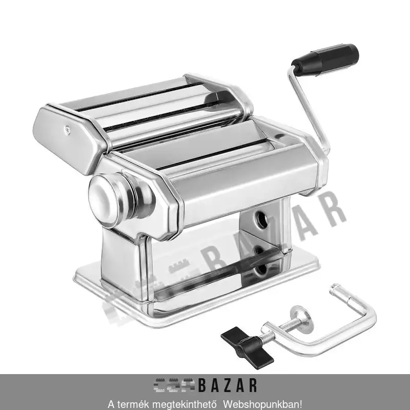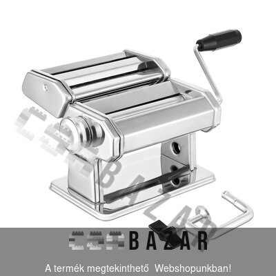 Használata: A tésztagépet a munkafelületre kell rögzíteni. Majd elkezdhetjük a tésztát nyújtani a következőképpen: a tésztát felülről igazítsuk a sima hengerek közé, miközben a hajtókart lassan tekerjük. A nyújtott tészta vágásához helyezzük fel a vágó egységet a gépre. Majd a kinyújtott tésztát igazítsuk a vágóhengerek valamelyike közé, és lassan tekerjük a kart.