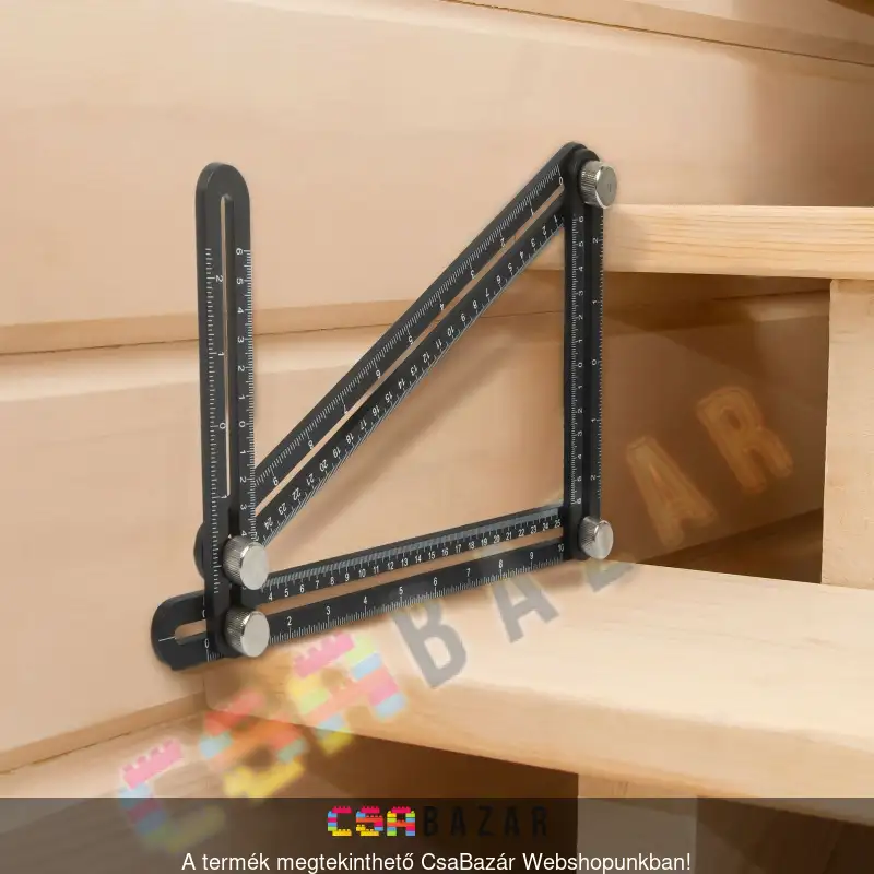 Fém négyoldalú vonalzó, szögmásoló - 31 x 18 cm