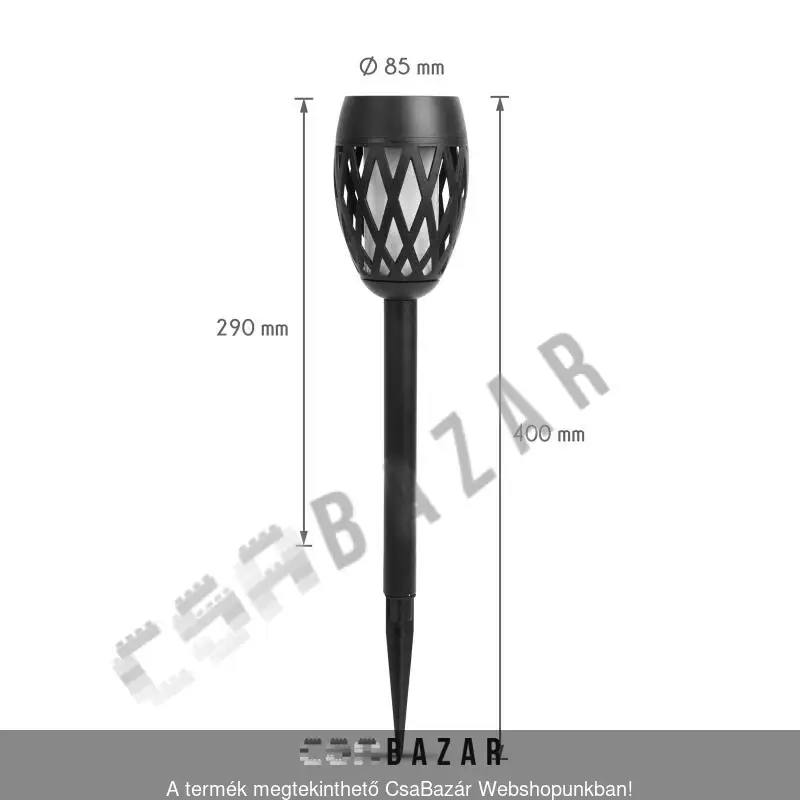 | Lámpa méret (+leszúrótüske): | Ø8,5 x 29 (+11) cm |