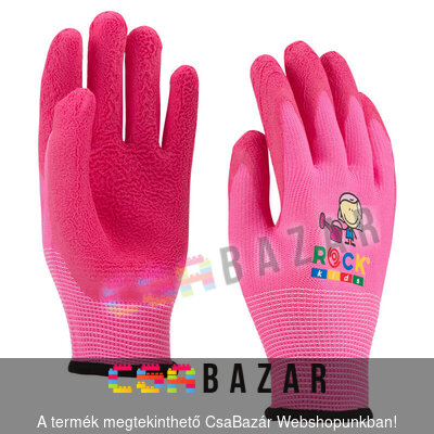 Gumírozott kerti kesztyű gyerekeknek 4-es méret - farmer mintával rózsaszín színben